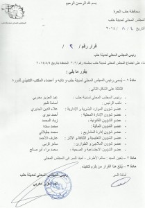 クッルナー・シュラカー(8月11日付)は、アレッポ市地元評議会が8月4日の声明で、アブドゥル・アズィーズ・マグリビー氏(「マグリビー」はアラビア語でモロッコ人の意味)を議長に選出したことを発表した、と批判的に報じた。