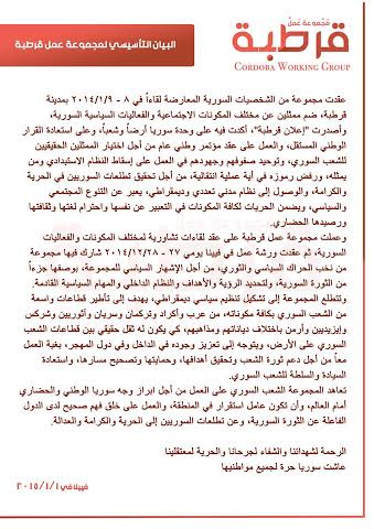 2014年1月8~9日にスペインのコルドバに介した国内外の反体制活動家は、1月1日付で声明を出し、12月27~28日にオーストリアのウィーンでワークショップを開催し、体制転換と民主的多元的市民政体実現に向けた組織を結成することを確認したと発表した。