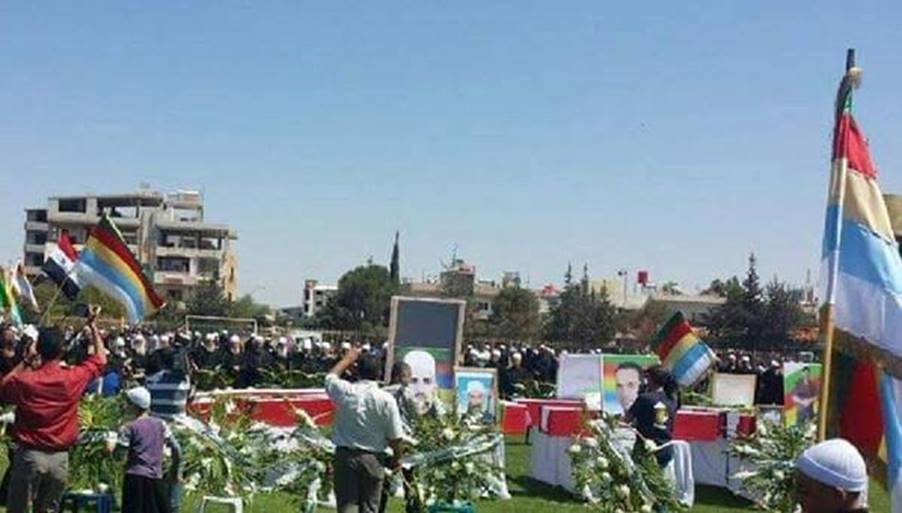 クッルナー・シュラカー(9月7日付)によると、葬儀には数千人の住民が参列し、ドゥルーズ派の旗、シリア国旗などを掲げ(反体制派が使用するフランス委任統治領シリアの国旗(いわゆる革命旗)は映像などでは確認されず)弔意を示したが、シリア政府関係者の参列は見られなかった。