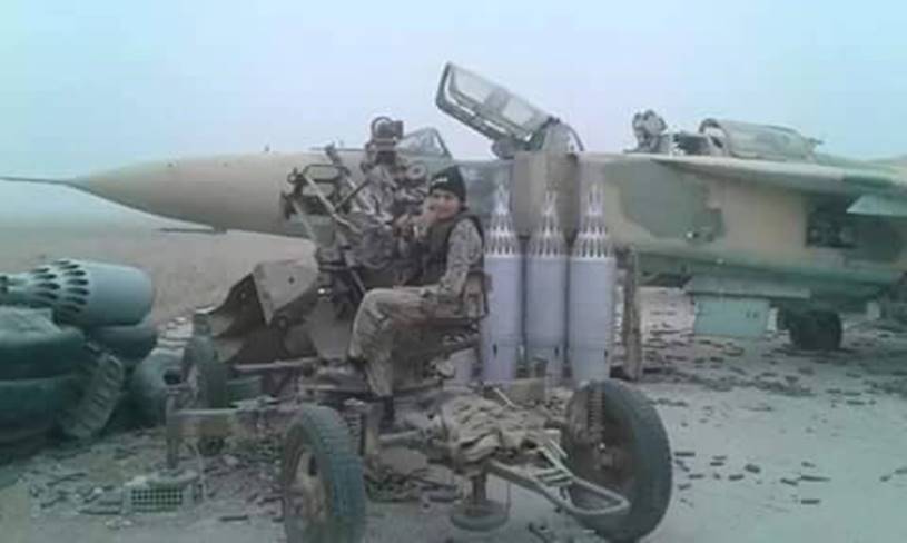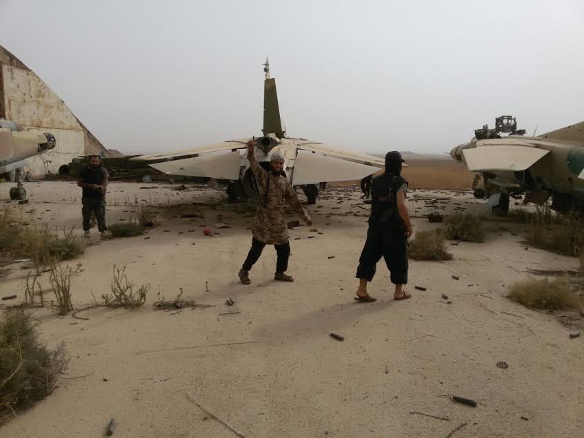 これに関して、クッルナー・シュラカー(9月9日付)によると、シャーム戦線アブー・ズフール地区広報センターは、ヌスラ戦線がアブー・ズフール航空基地敷地内に突入し、その大部分を制圧したと発表、基地内で捕獲したと思われる戦闘機やミサイルを背にして立つ戦闘員の写真などを公開した。