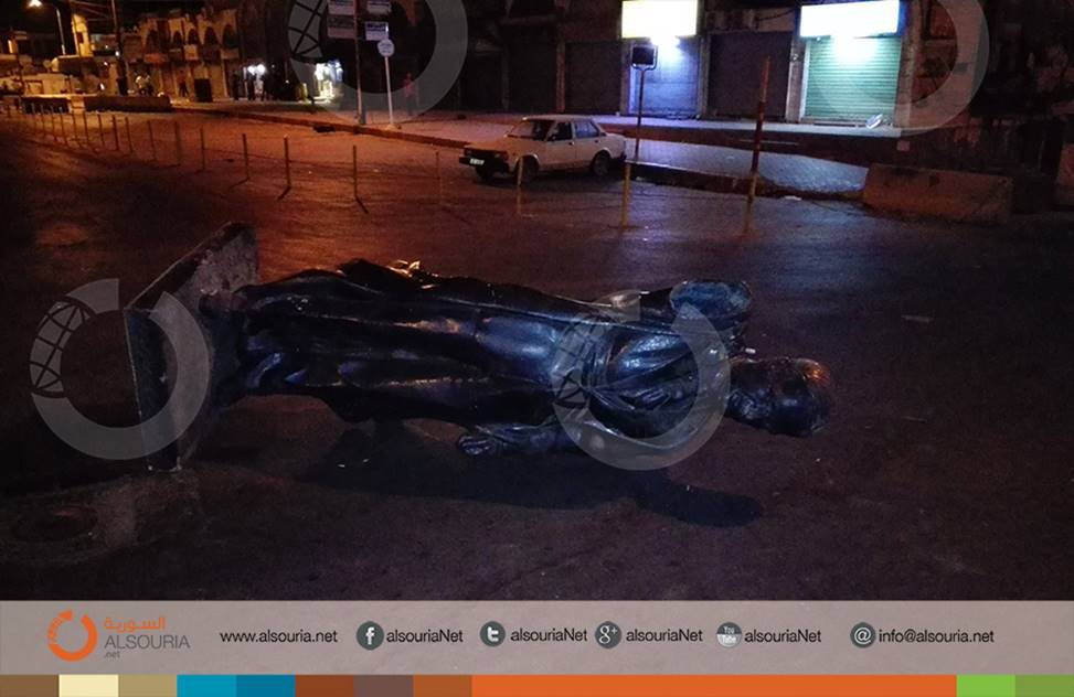 シリア・ネット(9月8日付)は、スワイダー市で4日に発生した連続自爆テロ後の暴動で破壊されたハーフィズ・アサド前大統領の立像の映像(http://all4syria.info/wp-content/uploads/2015/09/video-1441754906.mp4.mp4?_=1)を初めて公開した。