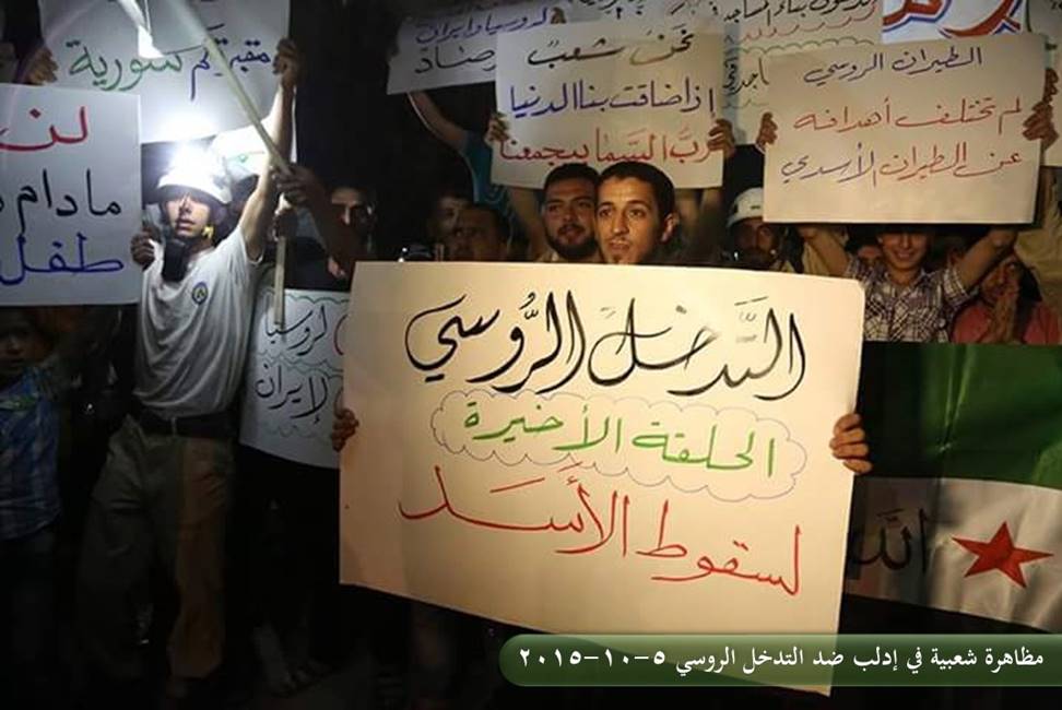クッルナー・シュラカー(10月6日付)は、アル=カーイダ系組織のシャームの民のヌスラ戦線、シャーム自由人イスラーム運動などが主導するファトフ軍の支配下にあるイドリブ市で、ロシア軍によるシリア領内での空爆に抗議するデモが発生したと報じ、その写真を掲載した。