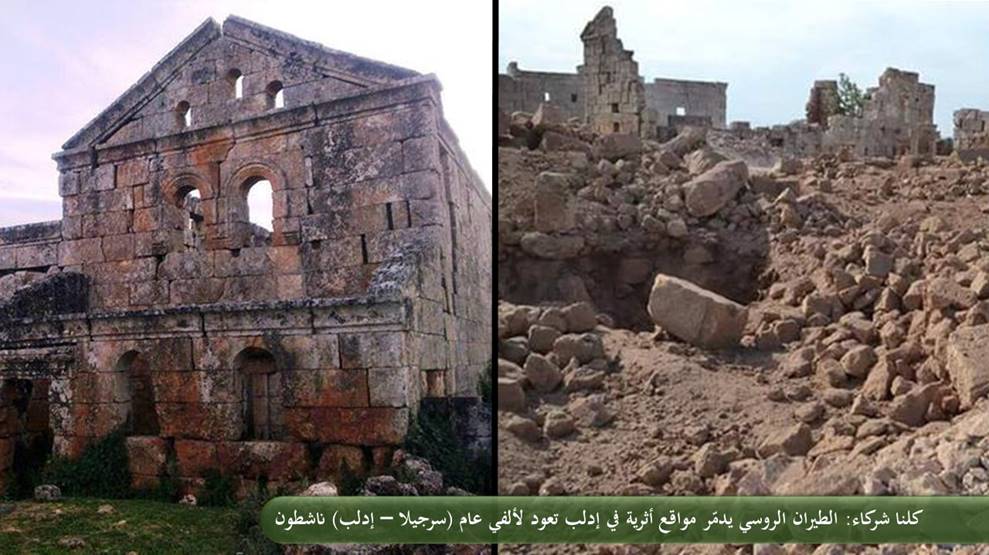 トルコのイスタンブールで活動するシリア革命反体制勢力国民連立は声明を出し、ロシア軍が10月4日にイドリブ県で行った空爆によって、ザーウィヤ山に位置するサルジーラー村の遺跡が標的となり、大きな被害を受けたと主張した。