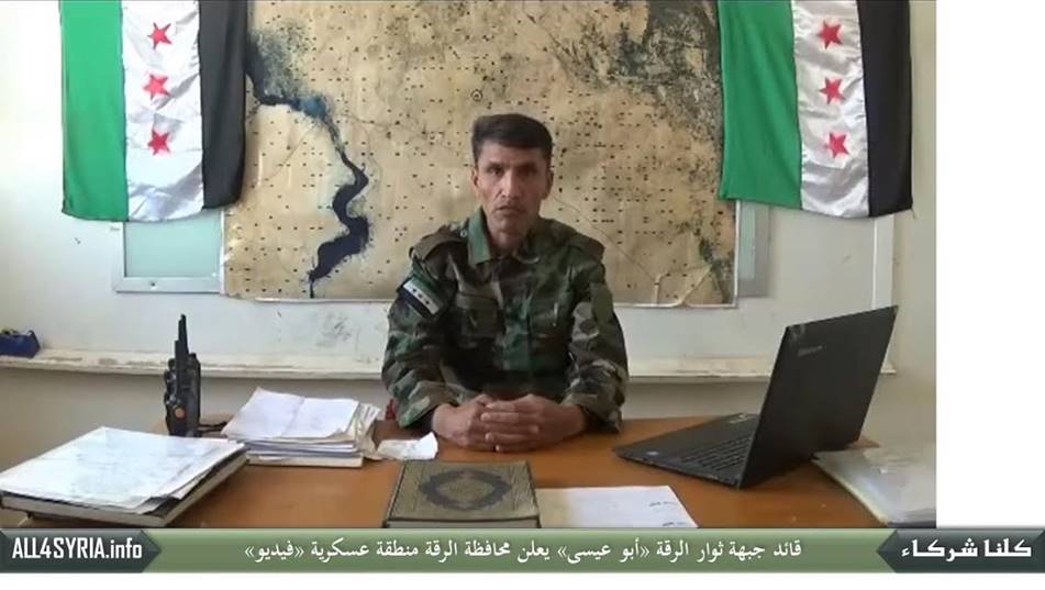 ロイター通信(10月29日付)によると、西クルディスタン移行期民政局(ロジャヴァ)人民防衛隊(YPG)主体のユーフラテスの火山作戦司令室に所属するラッカ革命家戦線(自由シリア軍)のアブー・イーサーを名乗る司令官は、ダーイシュ(イスラーム国)の中心拠点であるラッカ市一帯を「軍事地区」に指定したと発表、ダーイシュのメンバーに対して「5日以内に離反する」よう警告するとともに、ラッカ市住民に支援を呼びかけ、同市攻略への意思を示した。