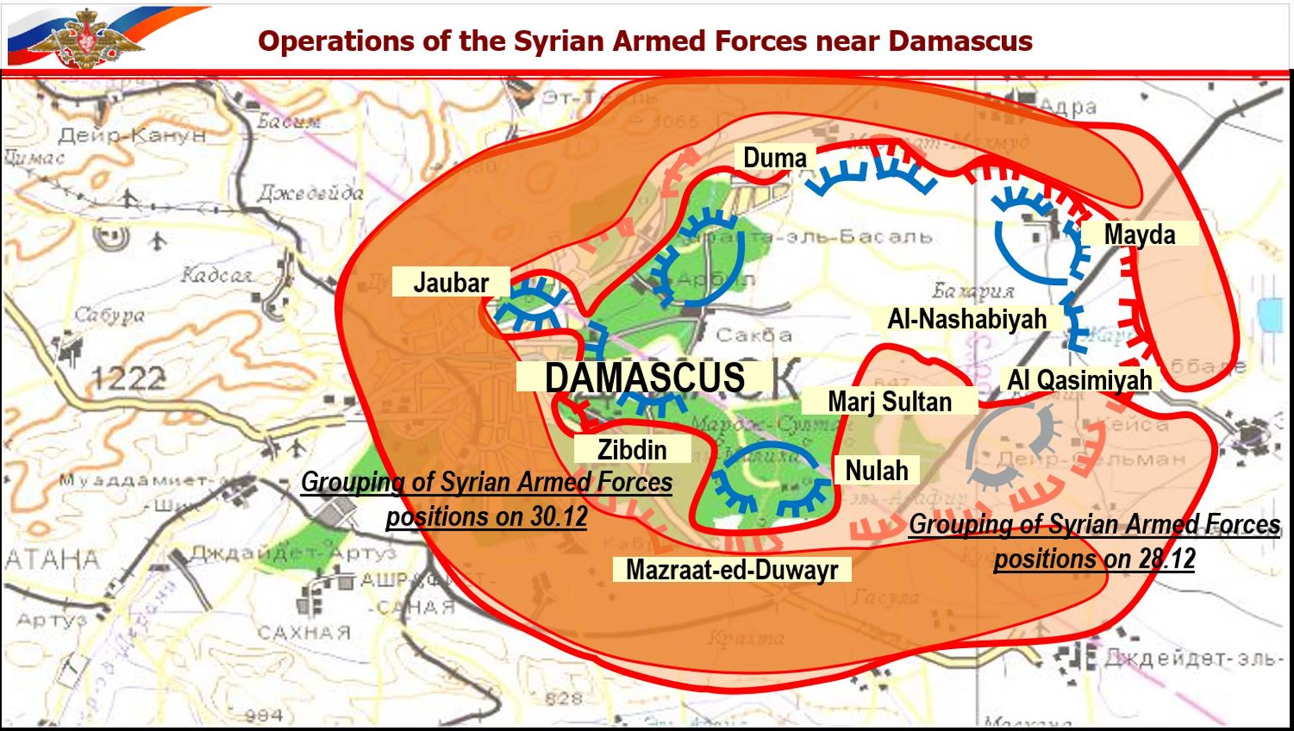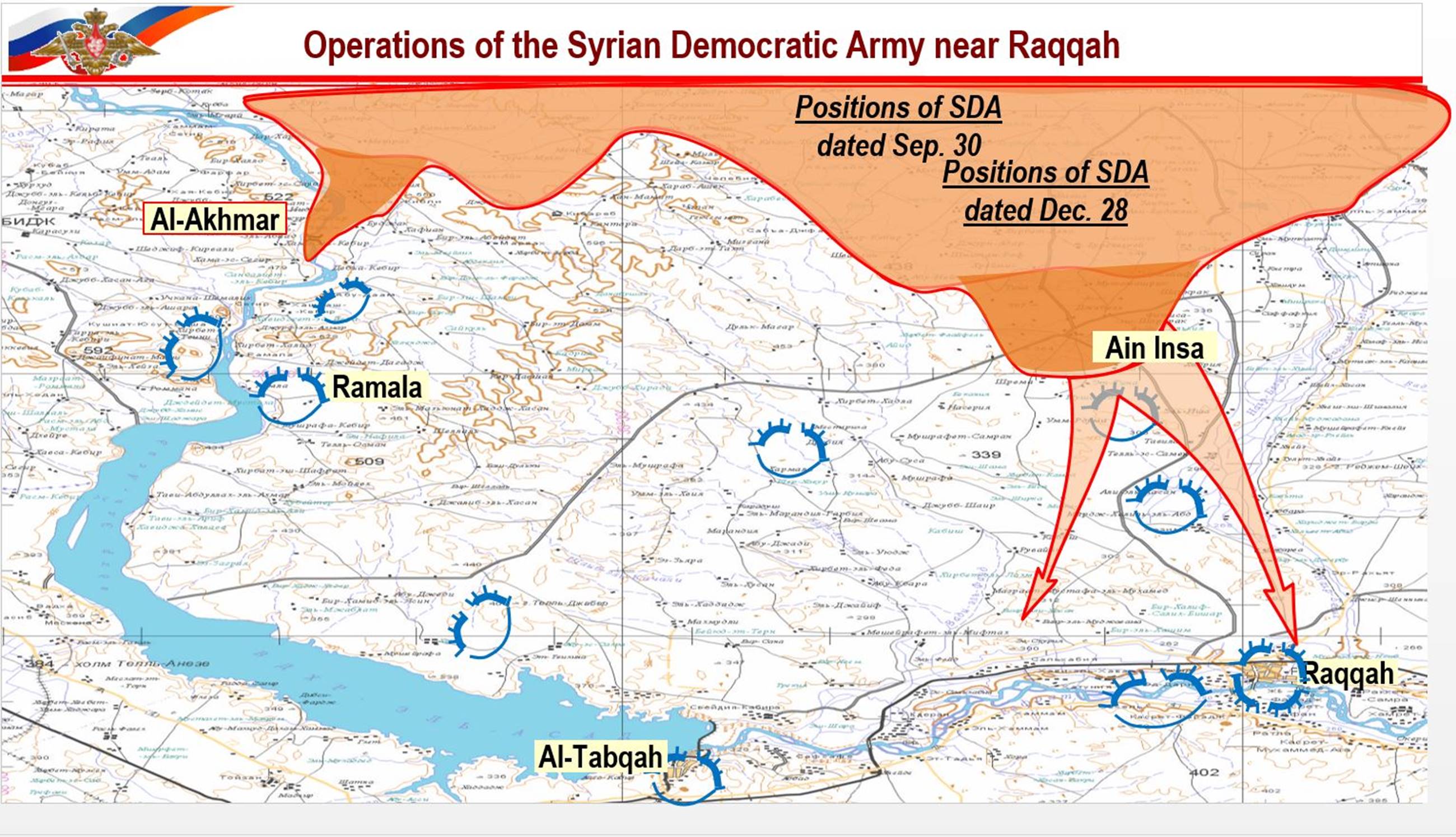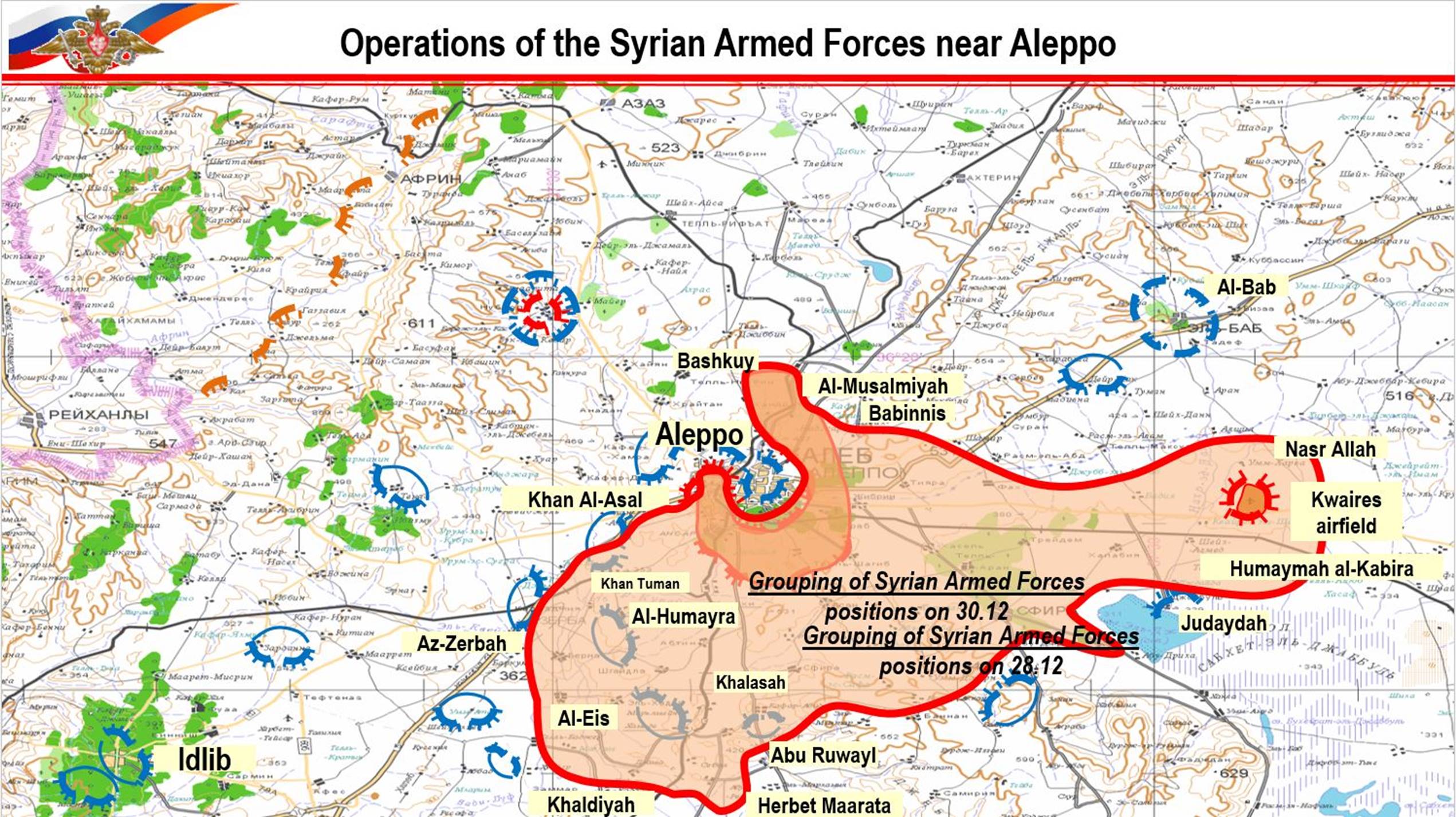 ロシア国防省は、12月25日から27日までの3日間で、シリア駐留ロシア軍戦闘機が164回の出撃を行い、アレッポ県、イドリブ県、ラタキア県、ハマー県、ヒムス県、ダマスカス郊外県、ダイル・ザウル県、ラッカ県で、ダーイシュ(イスラーム国)など「テロリスト」の556の標的を空爆したと発表した。