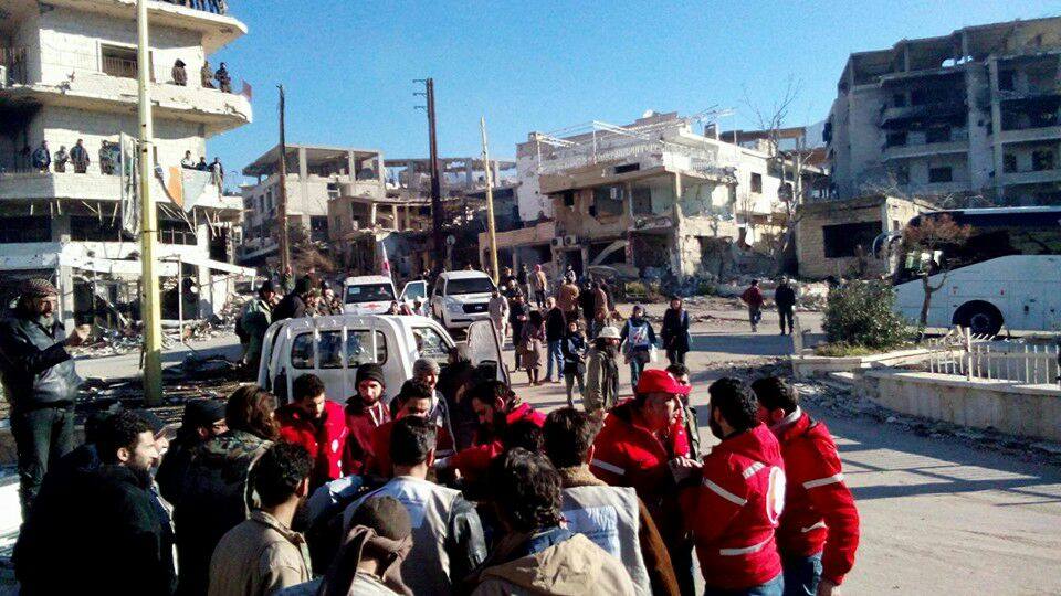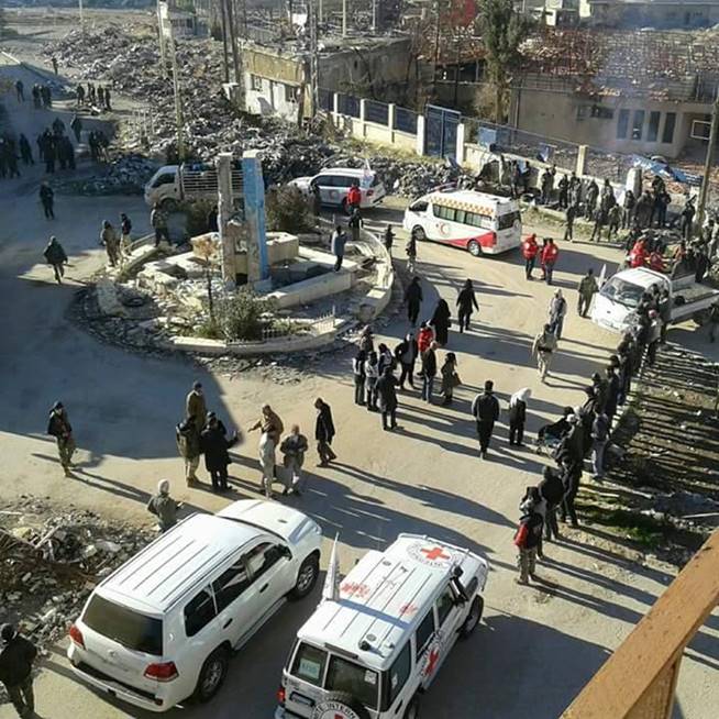『ハヤート』(12月29日付)によると、9月にイランの仲介により、ダマスカス郊外県ザバダーニー市一帯およびイドリブ県フーア市・カファルヤー町一帯で成立したシリア軍とアル=カーイダ系組織のシャーム自由人イスラーム運動などを中心とする反体制武装集団の停戦合意に従い、ザバダーニー市で籠城を続けていた反体制武装集団戦闘員ら126人が、救急車22台と大型旅客バス7台に分乗し、レバノン領内に退去した。