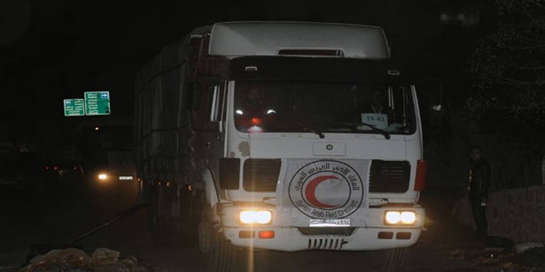 SANA(1月11日付)は、シリア軍、ヒズブッラーが包囲を続けるダマスカス郊外県マダーヤー町と、アル=カーイダ系組織のシャームの民のヌスラ戦線などが包囲を続けるイドリブ県フーア市、カファルヤー町に、国連とシリア赤新月社のトレーラー65輌が人道支援物資への搬入を行った。