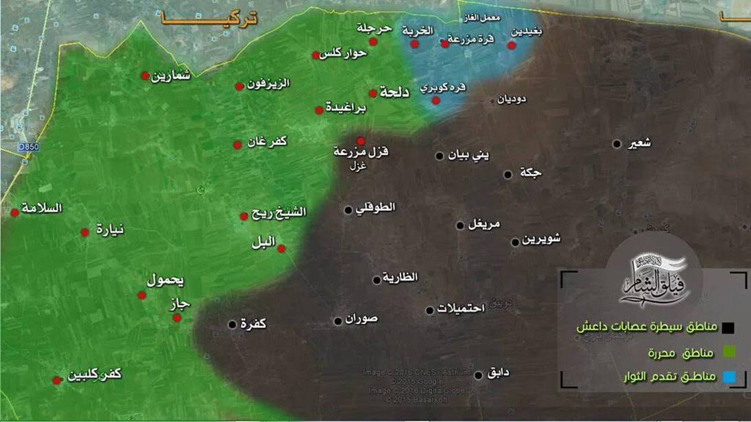 また、ARA News(1月13日付)によると、シャーム戦線を含むアレッポ・ファトフ軍作戦司令室が有志連合の航空支援を受け、トルコ国境地帯でダーイシュと交戦し、タクリー村、ハラファトリー村を制圧した。