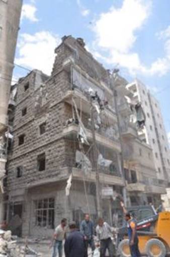 しかし、SANA(4月28日付)によると、シャームの民のヌスラ戦線などからなる反体制武装集団がアレッポ市ブスターン・カスル地区方面からマイダーン地区、アシュラフィーヤ地区、サアドッラー・ジャービリー公園一帯、県庁舎一帯、ザーリー病院一帯などの住宅地を無差別砲撃し、33人が死亡、165人が負傷した。