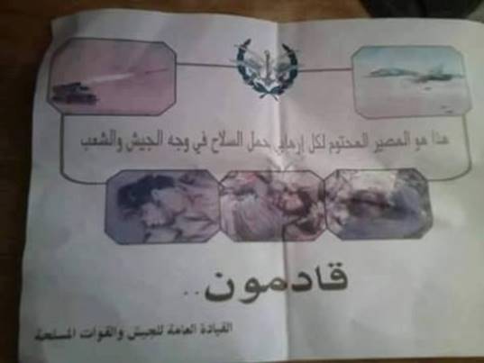 ラッカ県では、ARA News(6月14日付)によると、シリア軍航空機が、ダーイシュ(イスラーム国)の中心都市のラッカ市および同市周辺一帯にビラを散布、投降を呼びかけた。