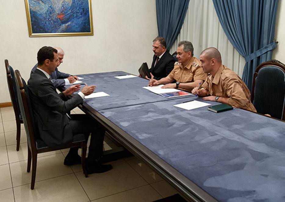 アサド大統領は、ラタキア県フマイミーム航空基地のシリア駐留ロシア軍司令部などを視察するためにシリアを訪問中のセルゲイ・ショイグ国防大臣と会談し、シリア・ロシア両国の軍事協力関係、シリア領内での「テロとの戦い」の合同作戦などについて意見を交わした。
