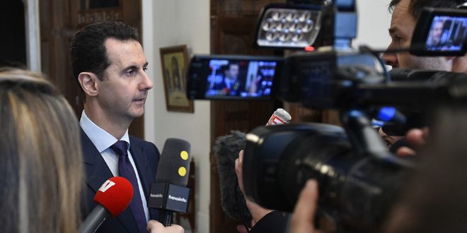 アサド大統領は、フランスのメディア各社のインタビューに応じ、シリアをめぐって世界のすべてがあらゆるレベルで変化しつつあると述べるとともに、シリア全土解放が任務だと強調した。