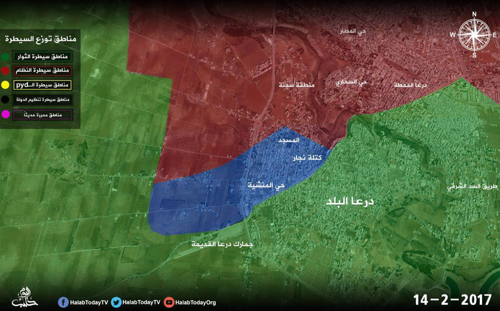 これに対して、ヌスラ戦線はダルアー市マンシヤ地区を砲撃し、1人が死亡、2人が負傷した。