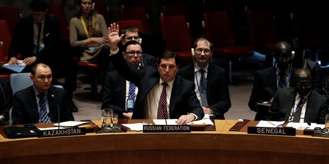 国連安保理では、米国、英国、フランスが共同提案した決議案の採決が行われ、ロシア、中国、ブルガリアが反対、カザフスタン、エチオピア、エジプトが棄権し、ロシア、中国の拒否権発動により廃案となった。