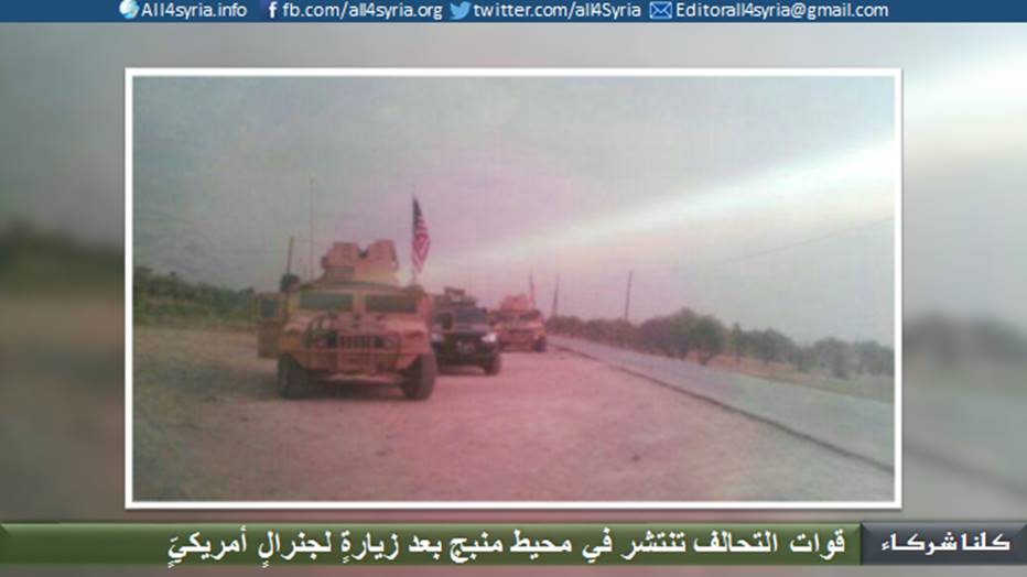 発表は、ハワール・キリス作戦司令室とともにダーイシュの拠点都市バーブ市を制圧したトルコが、マンビジュ市攻略への意志を改めて示したことを受けたもので、地元の活動家らは、マンビジュ市一帯と思われる地域を走行する米軍の車輌の画像をインターネットを通じて公開した。