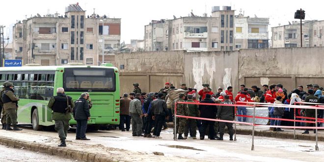 退去したのは、戦闘員423人とその家族1,053人で、タラール・バラーズィー県知事によると、シリア赤新月社、ロシア軍憲兵隊、シリア軍治安部隊の監視のもと退去、これによりヒムス市全土はシリア政府の支配に復帰した。