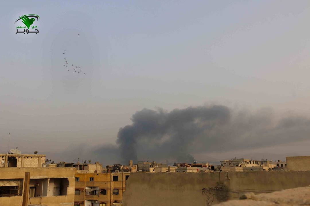 これに対して、シリア軍はアッバースィーイーン・バス・ターミナル一帯奪還のために攻撃を強めるとともに、カーブーン区およびダマスカス郊外県東グータ地方一帯(ハラスター市、アルバイン市など)に対して35回以上の空爆を実施した。