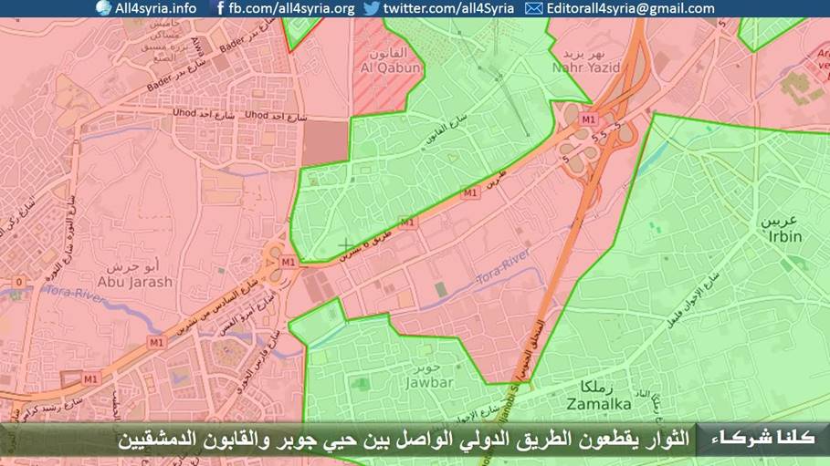 攻撃は、シャーム解放機構、ラフマーン軍団がジャウバル区で、第1旅団とウンマの曉旅団がカーブーン区およびバルザ区一帯で開始され、反体制武装集団はカーブーン区の工業地区、ジャウバル区内の複数の建物群を制圧した。