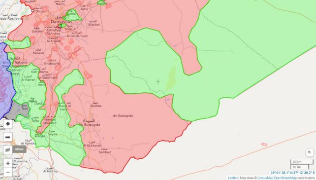 米国の支援を受け、ヒムス県タンフ国境通行所を拠点とする「ハマード浄化のために我らは馬具を備えし」作戦司令室(自由シリア軍諸派、「土地は我らのものだ」作戦司令室)に所属する殉教者アフマド・アブドゥー軍団のサイード・サイフ報道官によると、スワイダー県東部郊外のほぼ全域がシリア政府の支配下に入った。