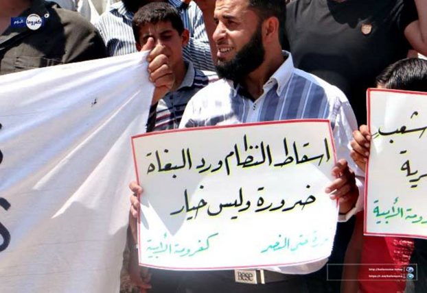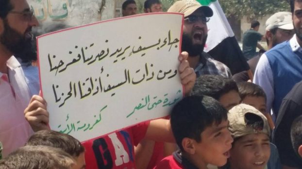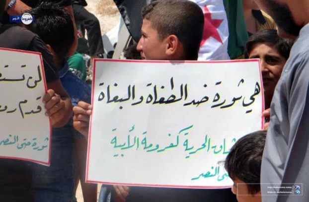 イドリブ県では、クッルナー・シュラカー(8月12日付)によると、カフルナブル市、ハーッス村、カフルルーマー村、マアッラト・ヌウマーン市でデモが発生し、アサド政権の打倒とシャーム解放機構の退去が要求された。