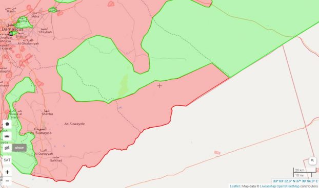 SANA(10月10日付)は、シリア軍の前線司令官の話として、同盟部隊の支援を受けるシリア軍部隊が、ダマスカス郊外県南東部、スワイダー県東部の対ヨルダン国境地帯のすべての丘陵地帯と監視所(第154監視所~第197監視所)を含む1万2,000平方キロメートルの地域から「テロリスト」を排除し、同地を制圧したと伝えた。