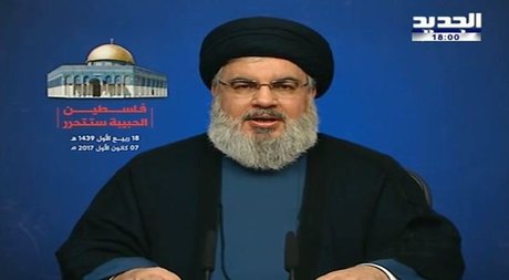 ヒズブッラーのハサン・ナスルッラー書記長は「愛すべきパレスチナは解放される」と題してテレビ演説を行い、ドナルド・トランプ米大統領が6日にエルサレムをイスラエルの首都として承認したことを非難し、「パレスチナのための新たなインティファーダ」を呼びかけた。
