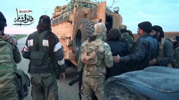 トルコの支援を受けるシリア・ムスリム同胞団系のシャーム軍団は、トルキスタン・イスラーム党による「アッラーには彼らを助ける力がある」作戦の開始と「穏健な反体制派」による「暴君への抗戦」作戦司令室設置と並行して、トルコ軍の装甲車をイドリブ県南部での戦闘に投入したと発表、そのビデオ映像をユーチューブ(https://youtu.be/erVLQ69jkt4)を通じて公開した。