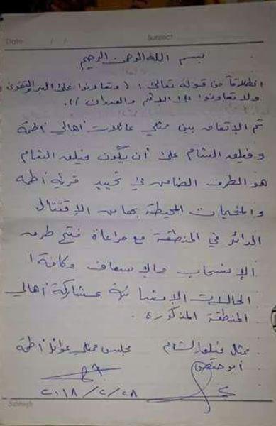 イドリブ県では、トルコ国境に位置するアティマ村の住民代表評議会が声明を出し、住民がシャーム軍団と同地を中立化することで合意したと発表した。