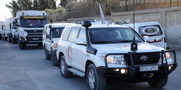 シリア人権監視団によると、支援チームの車列がドゥーマー市に入る直前、同地一帯に対して5回にわたる爆撃が行われたという。
