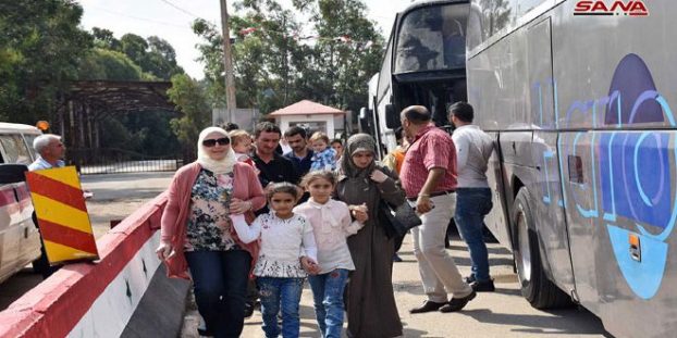 SANA(9月9日付)によると、レバノンで避難生活を送ってきた避難民数百人が、ダマスカス郊外県のジュダイダト・ヤーブース国境通行所、ヒムス県のザムラーニー国境通行所、タルトゥース県のダブースィーヤ国境通行所を経由して、ダマスカス郊外県(『ハヤート』(9月10日付)によると主にカラムーン地方出身者))、ヒムス県の自宅に帰還した。