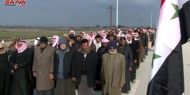SANA(1月6日付)は、シリア軍によって解放されたダイル・ザウル県内の村々の住民で北・東シリア自治局支配地域内に逃れていた避難民約300人が、ダイル・ザウル市近郊のユーフラテス川左岸に位置するサーリヒーヤ村(サーリヒーヤト・ジャズィーラ村)に設置された通行所を経由してシリア政府支配地域に帰還したと伝えた。