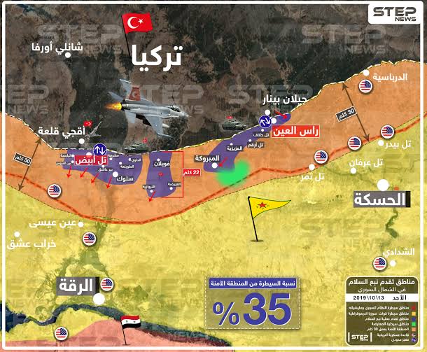 AFP, October 13, 2019、ANHA, October 13, 2019、AP, October 13, 2019、al-Durar al-Shamiya, October 13, 2019、Reuters, October 13, 2019、SANA, October 13, 2019、SOHR, October 13, 2019、UPI, October 13, 2019などをもとに作成。